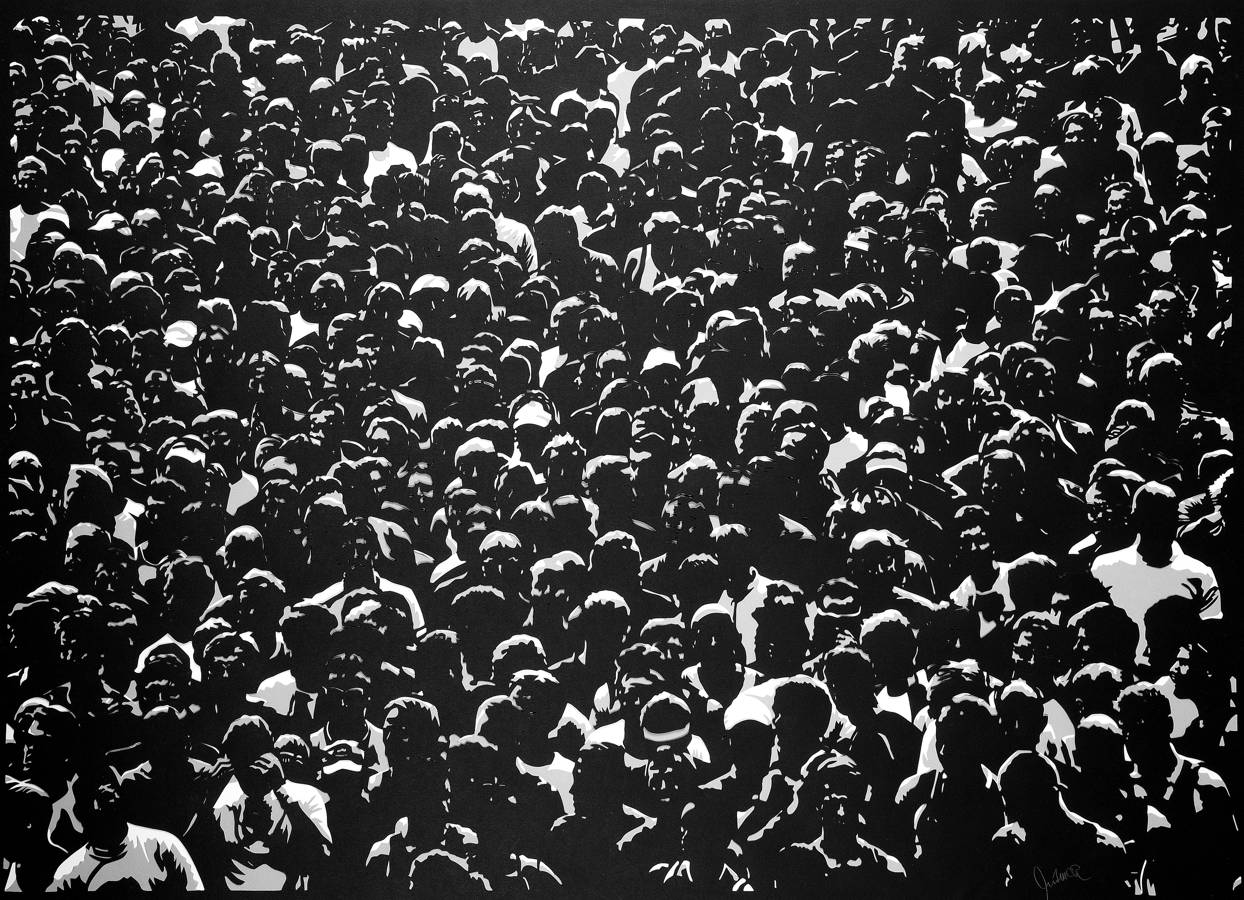 "Massenbewegung" 70x100 | Scherenschnitt | Wolfgang Müller